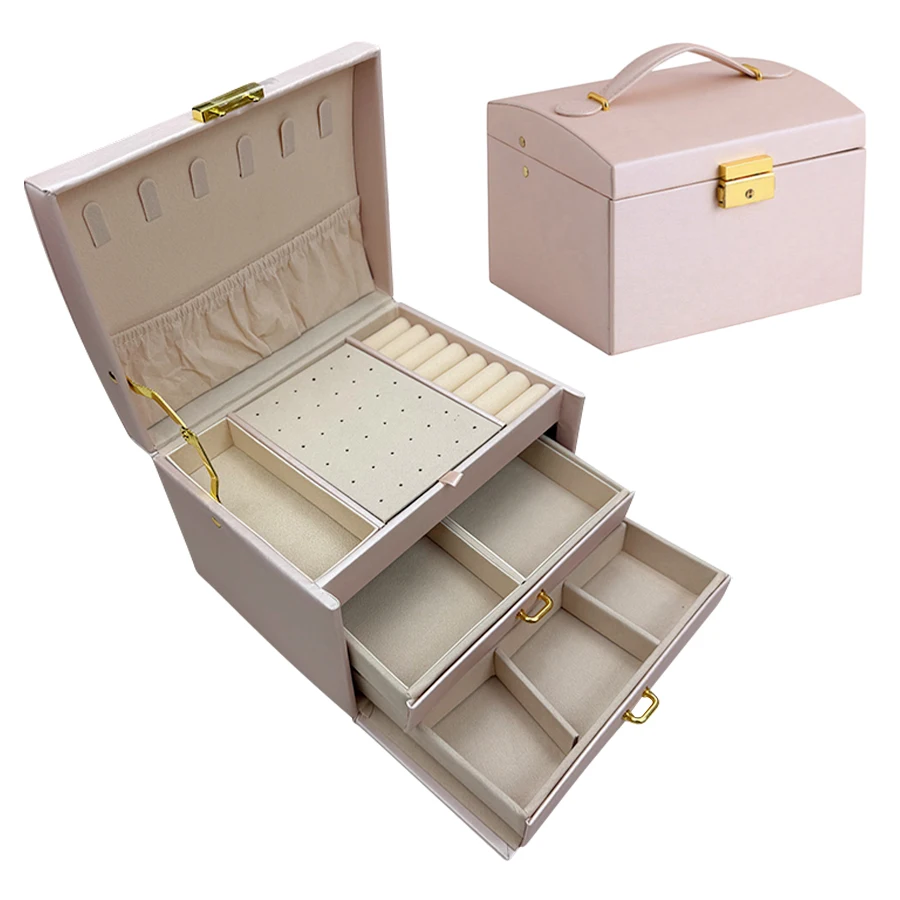1. Exquisite design, locking arch three-layer jewelry box using high-quality materials and unique design concepts, to create a beautiful appearance, both practical and artistic.